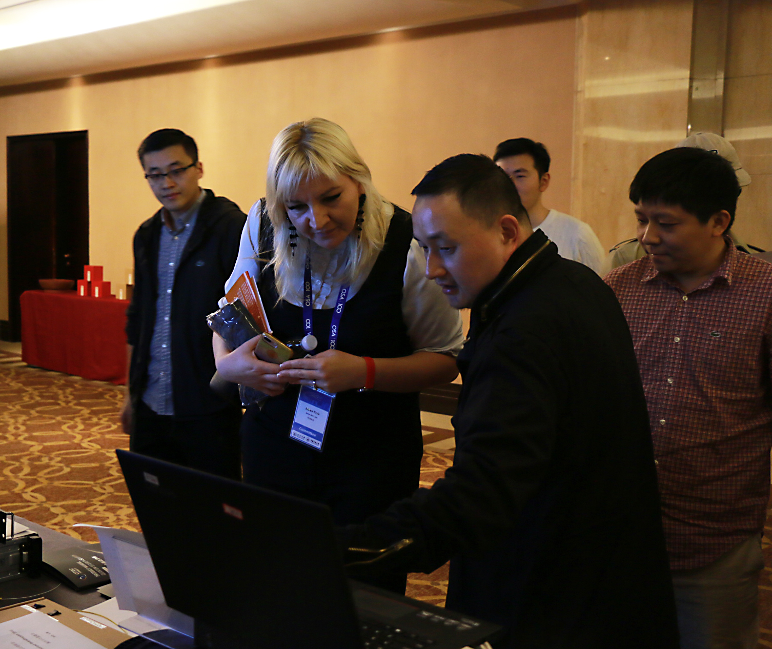 圖為九州量子技術(shù)人員正在和國內(nèi)外參會嘉賓交流