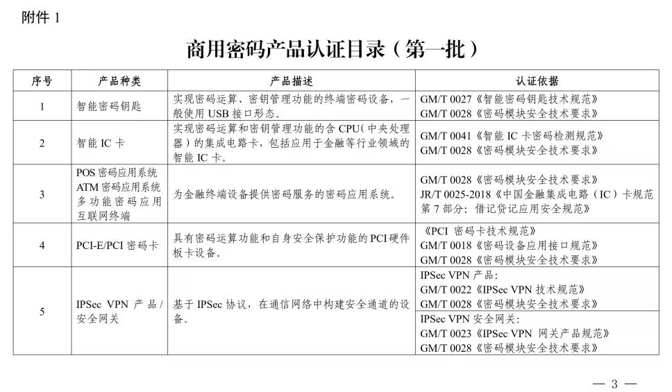附件:1.商用密碼產(chǎn)品認證目錄(第一批)