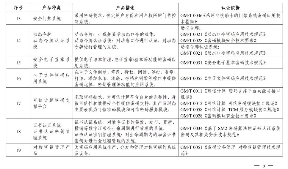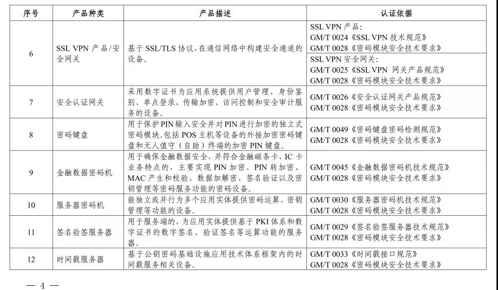 《商用密碼產(chǎn)品認證目錄(第一批)》