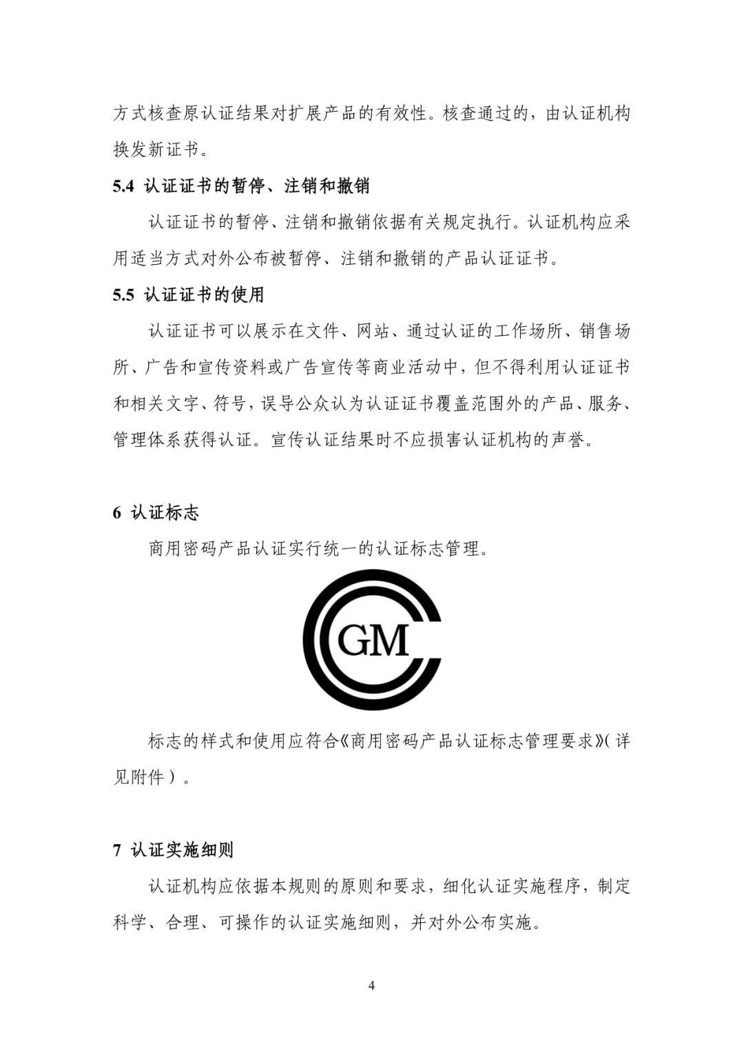 《商用密碼產(chǎn)品認證規(guī)則》的公告