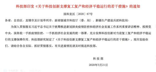 3月21日,科技部印發(fā)《關(guān)于科技創(chuàng)新支撐復(fù)工復(fù)產(chǎn)和經(jīng)濟(jì)平穩(wěn)運(yùn)行的若干措施》的通知,通知提出,大力推動(dòng)關(guān)鍵核心技術(shù)攻關(guān),加大5G、人工智能、量子通信、腦科學(xué)、工業(yè)互聯(lián)網(wǎng)、重大傳染病防治、重大新藥、高端醫(yī)療器械、新能源、新材料等重大科技項(xiàng)目的實(shí)施和支持力度,突破關(guān)鍵核心技術(shù),促進(jìn)科技成果的轉(zhuǎn)化應(yīng)用和產(chǎn)業(yè)化,培育一批創(chuàng)新型企業(yè)和高科技產(chǎn)業(yè),增強(qiáng)經(jīng)濟(jì)發(fā)展新動(dòng)能。