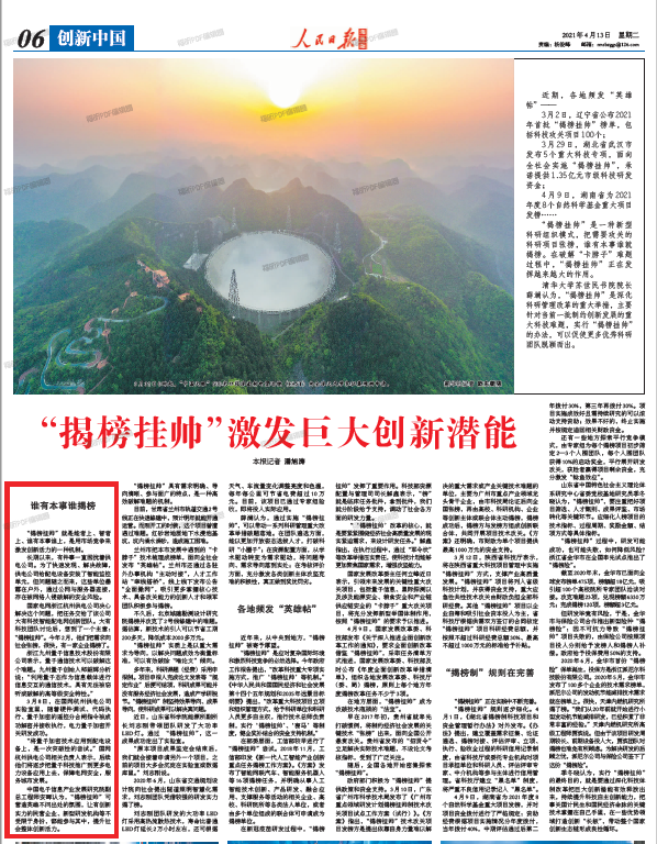 “揭榜掛帥”就是能者上、智者上、誰有本事誰上,是用市場(chǎng)競(jìng)爭(zhēng)來激發(fā)創(chuàng)新活力的一種機(jī)制。