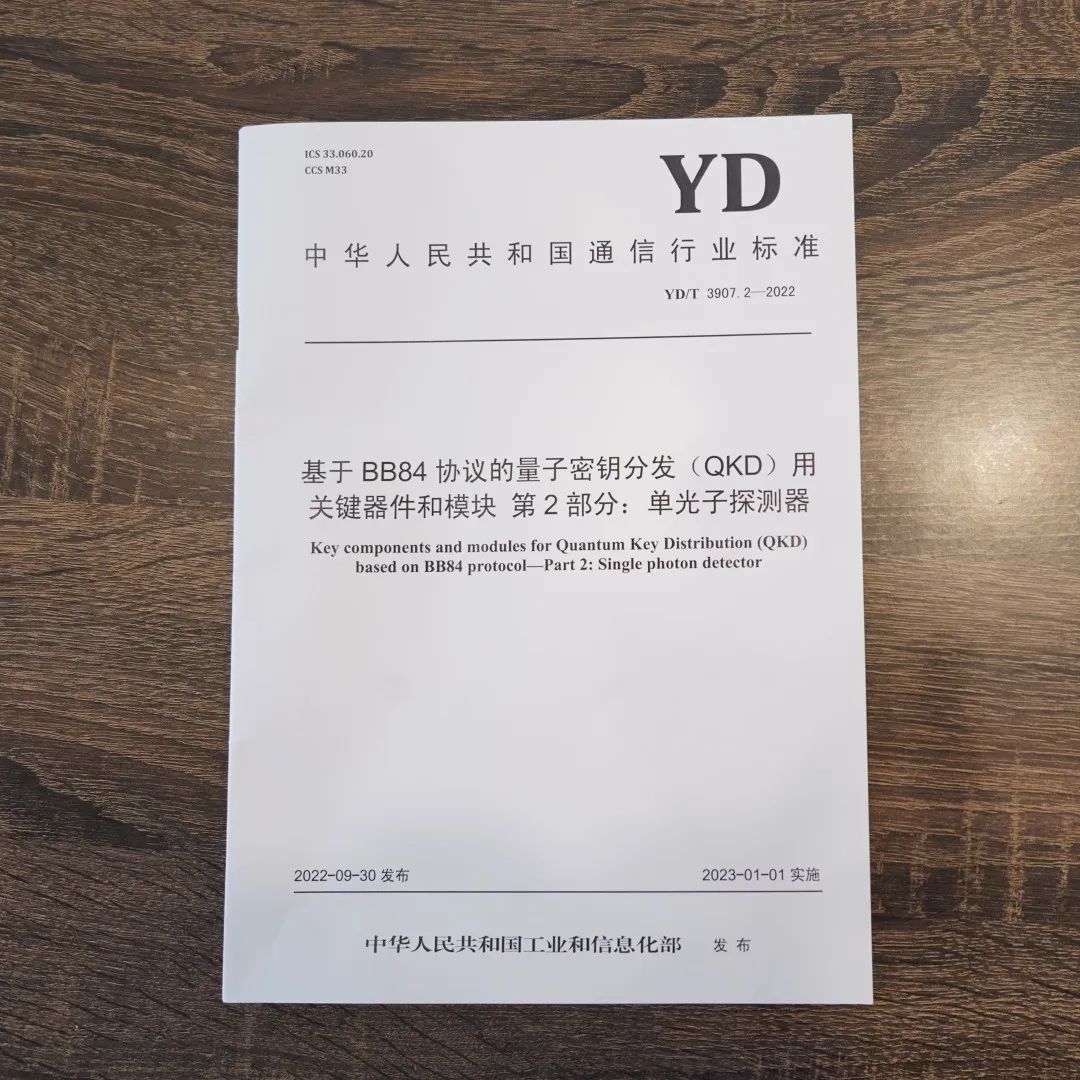 近日,國家工信部發(fā)布實施的國內首個單光子探測器行業(yè)標準YD/T3907.2-2022《基于BB84協議的量子密鑰分發(fā)(QKD)用關鍵器件和模塊 第2部分:單光子探測器》正式對外發(fā)刊,適用于采用光纖信道傳輸的基于BB84協議的QKD系統(tǒng)用雪崩光電二極管單光子探測器的設計、開發(fā)、生產及測試。