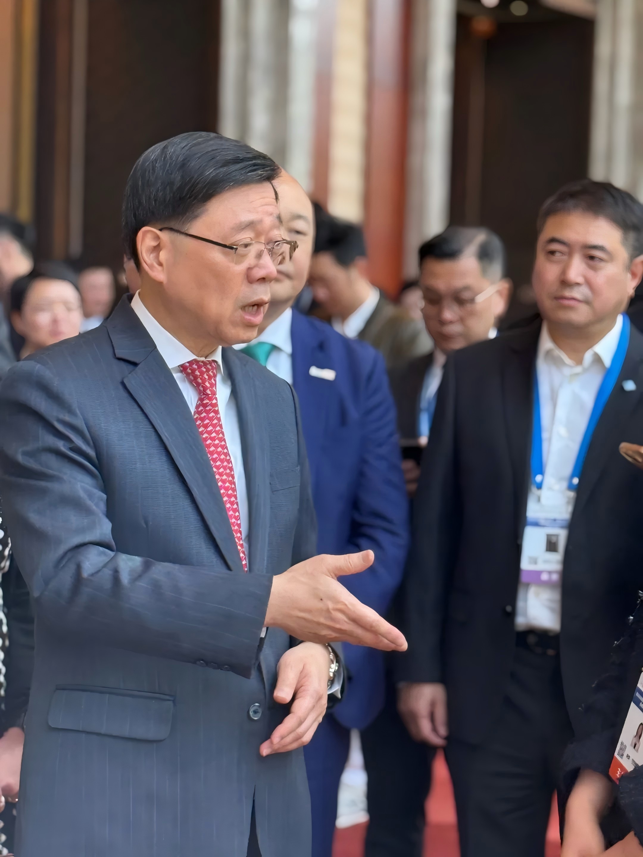 圖片李家超特首正在親切地與現(xiàn)場企業(yè)家們做交流